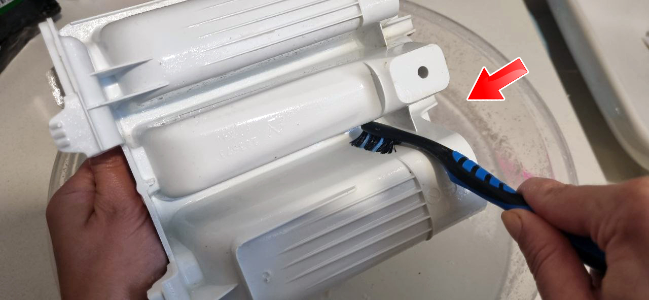 V 1 litru teplé vody rozpusťte 1 polévkovou lžíci kyseliny citronové a dobře promíchejte, aby se kyselina citronová zcela rozpustila. Vezměte zásobník, pro pohodlí jej lze rozebrat stisknutím speciálních západek na těle a umístit jej na hodinu do předem připravené nádoby s roztokem. Případné zbytky nečistot očistěte houbičkou a hadříkem, na špatně dostupná místa můžete použít zubní kartáček a tyčinky do uší. Nakonec podnos opláchněte pod tekoucí vodou a vytřete dosucha.